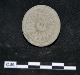 | Description / विवरण | Terracotta object depicts a earring with floral design on one part and circular design on another. |