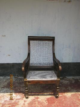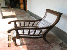 | Description / विवरण | A sofa with designed and carved arm rests, legs and back frame with cane wearing of seats and back rest.Four legged sofa having curved hand rest and designed front legs. |