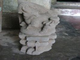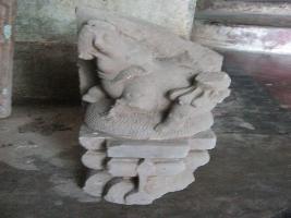 | Description / विवरण | It s a Gaja-simha image on a double lotus pedestal. The simha upon the gaja is totally eroded. Only the back left chaw is seen on the sculpture. It has found from the plinth of the temple while digging. |