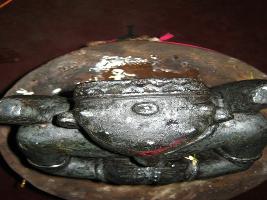 | Description / विवरण | Garuda sculpture kneeling before the Gambuja. Two wings are clearly visible. It has a rounded base. |