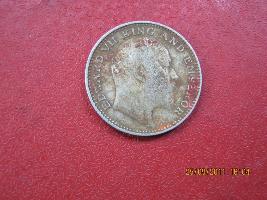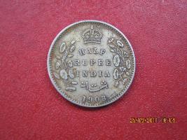 | Description / विवरण | Obverse has the figure of king Edward VII with the legend king and emperor and his name. The reverse has the value of the coin mentioned as 1 2 rupee and the date for place of issue as 1908 India. |