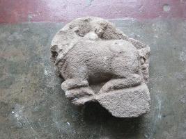 | Description / विवरण | It s a bull image in a sitting pose. A bell is hanging from the neck of the bull. Its face is broken. Its horns are also not noticeable. |