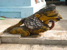 | Description / विवरण | It s a lion sculpture in a prancing mode. It has a broad proprudings tongue. |