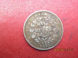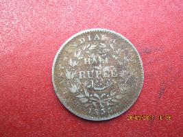| Description / विवरण | Obverse - Right profile face of King William IIII with head in middle and the legend William IIII King around it. Reverse - Half rupee is found in middle within. Two branches of a tree encircling it. Below is found the year of issue 1835 flanked by two small flowers. East India company is found around the branch circle. |