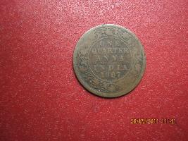 | Description / विवरण | Obverse -Left facing profile bare head of king Edward VII has around it EDWARD VII King and Emperor written as legends.Reverse - one quarter anna, INDIA 1907 written in five lines inside a dotted circle with a floral design around it. |