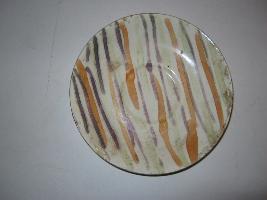 | Description / विवरण | The flat and shallow plate is white in colour. The obverse side has many thick lines drawn by using various colours at the time of preparation.There are so many hair cracks visible on both surface which is very shallow. Raised base is on reverse side. |