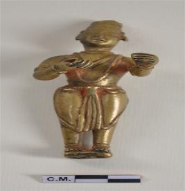 | Description / विवरण | Standing image of two armed male devote.The image is depicted as he is singing. |