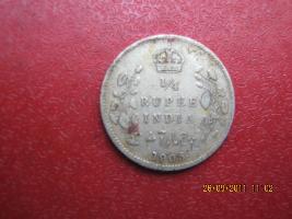 | Description / विवरण | Obverse has -bare left facing profile head of Edward VII. The legends are Edward VII King and Emperor around it.Reverse has legends as- RUPEE, INDIA, a short Persian inscription below it 1905, in five lines. Flanked by two floral vine and above crown above. |