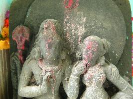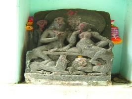 | Description / विवरण | A Hara-parvati image is sitting mode. A bull and a lion below their legs are seen. |