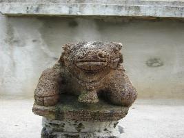 | Description / विवरण | A bull sculpture in a kneeling mode. The bell is hanging in his neck . A collar is spread around its back under its tail. |