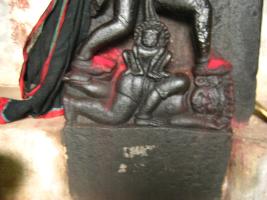 | Description / विवरण | A Bhairavi image having a saba vahaka below. A figure is in sitting pose below the legs of the image. |