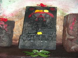 | Description / विवरण | A sculpture of manasha having its one leg pendant. Two flying devotees shown at the top corner of the sculpture. |