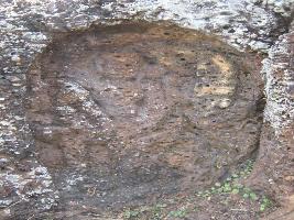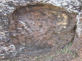 | Description / विवरण | The image is excavated on a laterite boulder. Image having 10 hands along with the Ayudhas. The demon is in buffallo from,which is not clear. Image is pratially eraded. |