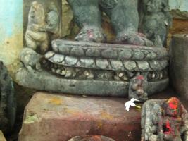 | Description / विवरण | A 4 armed Ganesh image standing on the double lotus pedastal . Three mice are noticed in different postures. |