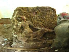 | Description / विवरण | A sculpture a man seated on a jackel. The face of the man is defaced. |