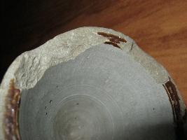 | Description / विवरण | This is a cover of a pot. Shape is conical. Inside a coninal cirular depression is found. Rim is pointed with a tan colour. Grooves are prominently visible on outer side. |