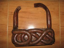 | Description / विवरण | The wood craft is made up by carving out from a single piece.The design is a two coiled snake with projected hoods.Two octagonal holes are visible in the wood,which are pireced from top to bottom.The bottom is covered by putting another wooden plate. |