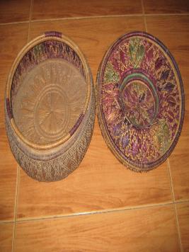 | Description / विवरण | The covered basket is made in circular fashion.The cover of the basket has wide circular projection which worked as knob.Outer surface of basket has the faded colour but,inner side contains various types of colour impression. |