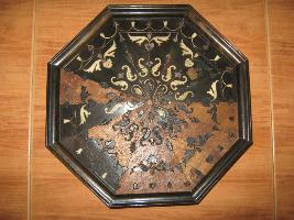 | Description / विवरण | The shield is made wood of which is detected with horn pieces.The shape is octagonal. On horn the ivory inlay works are visible but many of them are missing. |