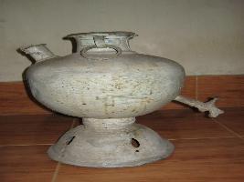 | Description / विवरण | The pitcher has a wide base and two handles are fixed near neck of the pitcher. Pitcher has a flairing mouth. One tap is fixed on the belly portion and another narrow mouth is fixed near the mouth. It was working as a thermo flax because the mouth is pierced through the bottom in cylindrical fashion. |