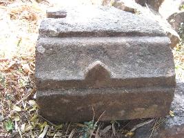 | Description / विवरण | Fragment of architectural member has a breakage mark on one side. Other are almost plain.One side has the step like offset design along with a tanku decoration.A groove mark is visible used for iron dowel. |