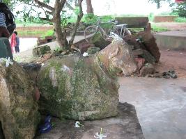| Description / विवरण | A broken sculpture of a bull with its both sides broken and the body totally rough and not clear. Its head is intact. |