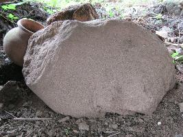 | Description / विवरण | A broken bull body where both sides have been broken. The torosa and hind part without the legs. |