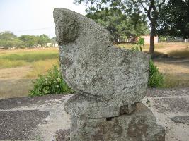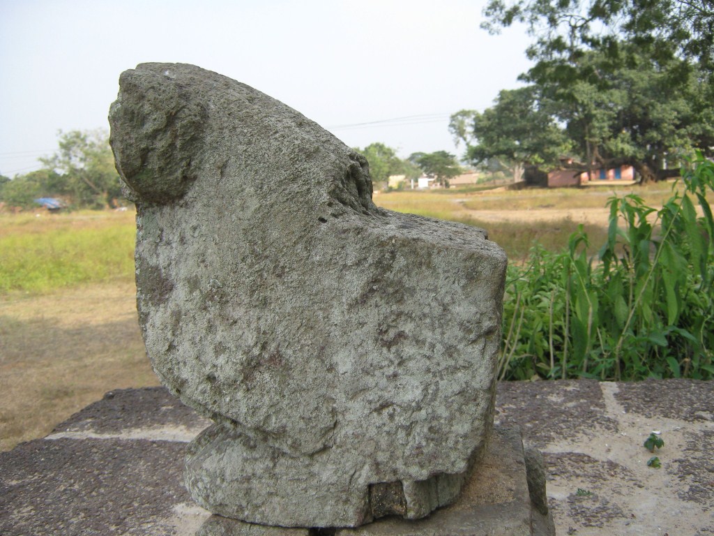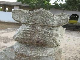 The makara face is a detched part from the top part of the pillar.The face is open and tounge is clearly visible.Face is grooved in lines.The flat eye like projectons are there on. The back of the makara face is plain to keep other piecec of stone.