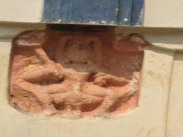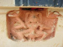 | Description / विवरण | A Kantikeya image is found sitting on the back of a peacock holding in this right hand a kunta and inhis left hand an object which is not clear. It has a trikhanda hair style. The image is eroded so that fine features are not clear. |
