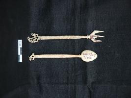| Description / विवरण | A small shallow oval bowl on a long handle. The entire handle is well decorated with partly broken floral motif at the end. |