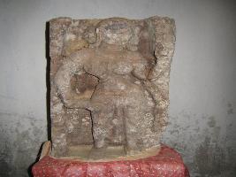 | Description / विवरण | Two handed Nayeeka is in standing pose. Left hand up raised and holding a fruit.Right is on right thigh.Right breast is flaking away and other is slightly . Face is partially eroded. |