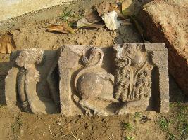 | Description / विवरण | Flat rectangular shaped stone is carved out on one side of the stone. Carving of two image is visible on the same surface one is lion and other is a flying male figure. |