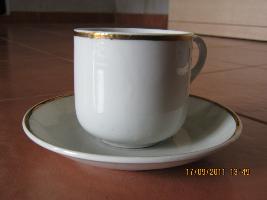 | Description / विवरण | White colour china clay cup with plate found as a set. The plate has a central circular, depression and golden colour border line on the edge plate. It has a base without glaze. Cup has a round handleand a golden colour border on outer edge is painted. |