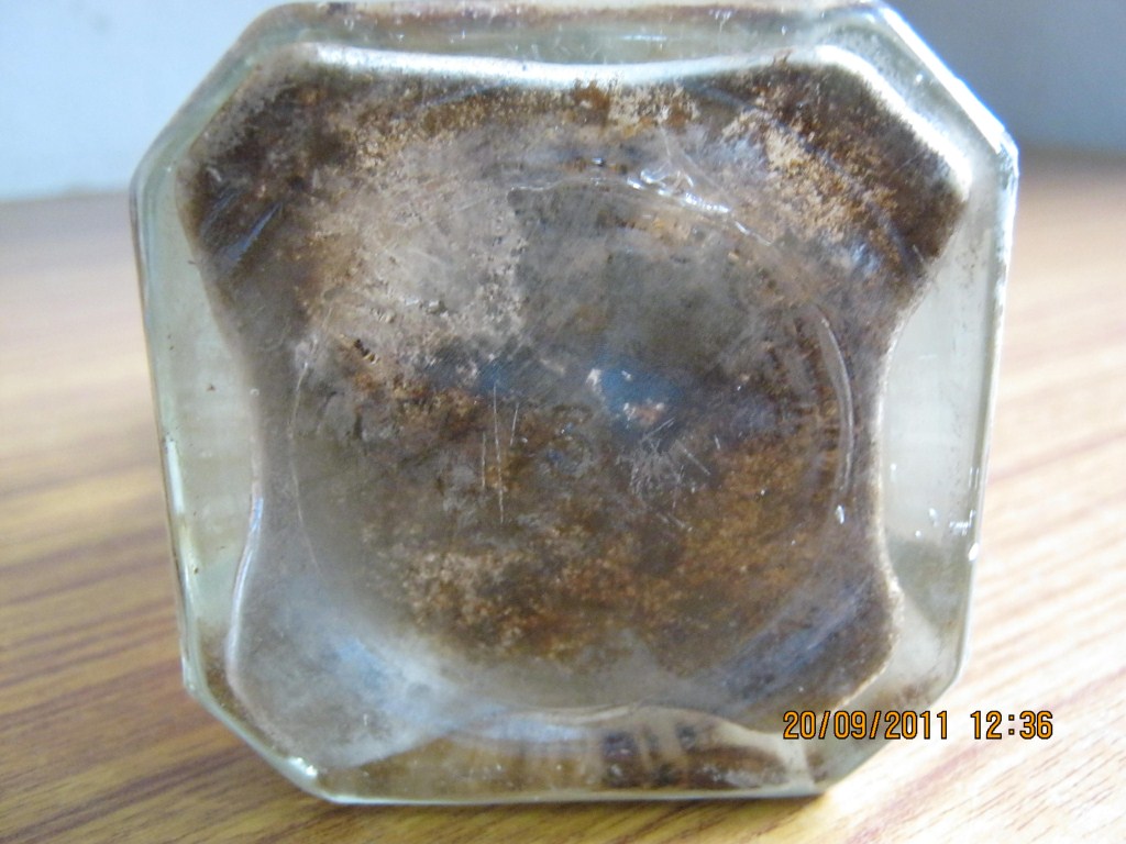 A glass bottle, octagonal in shape, has straight neck having thread rings and circular elevation. On base in a circular depression is found - SANATOGEN and in middle of the depression English Number 3 is embossed.