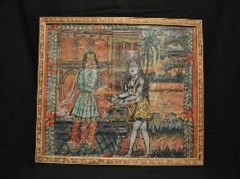 | Description / विवरण | Pata Chitra is a religious folk art that has crossed the national boundaries to reach the international area. The painting depicts mythological character in the full glory with the colourfully traditional art. It is made on paper illustrating scenes from popular Hindu mythological stories playing an important part in the oral transmission of tradition. It has used earth colour. This painting depicts deity Siva take some object from the royal person. |