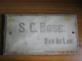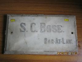 | Description / विवरण | A rectangular white marble name plate has two holes. Border is cut offset. Middle portion is slightly elevated from its border level. The plate bears the name of S.C.Bose, Bar. At-Law, who was brother of Subhas Bose. |