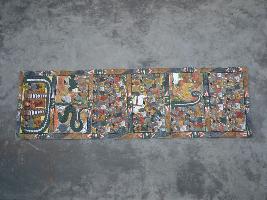 | Description / विवरण | Pata Chitra is a religious folk art that has crossed the national boundaries to reach the international area. The painting depicts mythological character in the full glory with the colourfully traditional art. It is made by paper and gluing layers of old cotton cloth and with tamarind glue and chalk to creat a leather like surface illustrating scenes from popular Hindu mythological stories playing an important part in the oral transmission of tradition. Here are used earth colour. This painting depicts Manasa mangla narrative poem. Painters sing simple narrative songs relating to these stories and show the public their scolls while singing from door to door. |