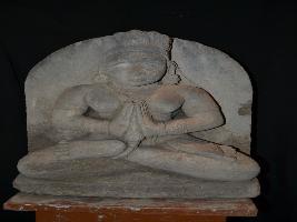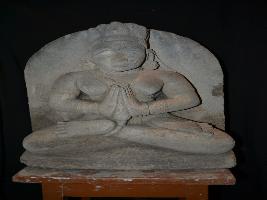 | Description / विवरण | The sculpture depicts a seated female deity in Padmasana with Anjali mudra. She is wearing ear ornanent, necklace, bracelets, armlets, anklets and elongated crowned. |
