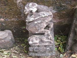| Description / विवरण | The animal is standing on a human body. Face is left turned. Pedestal is carved in two phases, face is partially broken. bird, vyala and elephant |