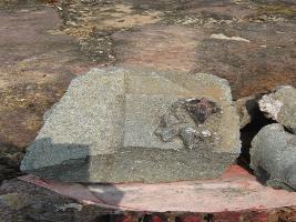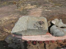 | Description / विवरण | The attendant figure is female, available from waist onwards. Two hands are visible.Right hand is raised. Left hand is broken. Face is of an animal. Hair is untidy. |