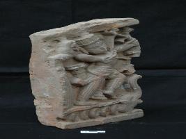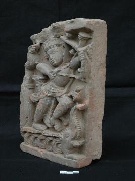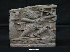 | Description / विवरण | The plaque depicts Lord Rama in fighting posture on a decorated chariot and holding bow and arrow.He is wearing stripped dhoti, garland, ornamented waistband, headdress and ear-rings. |