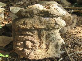 | Description / विवरण | The sculpture having two phases of carvings. Lower is elongated and upper is double petaled lotus. Above the base of image is visible. |