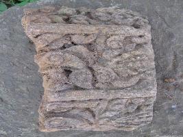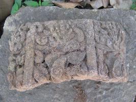 | Description / विवरण | The stone piece having rich carvings with floral motifs. At regular interval vertical bands are visible. Stone piece is flaking away from the original pillar fragment. |