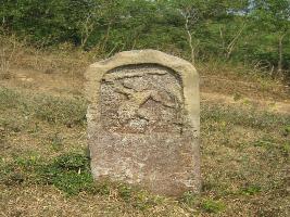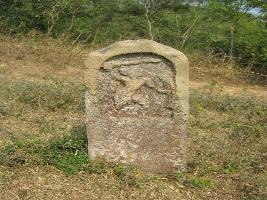 | Description / विवरण | The Hero stone is semi circular in design. Lower part is underneath and is square in shape. The front is flat and having an image of a warrior placed in a vaulted niche. The warrior wearing a dhoti and is in standing mode. Right hand is upraised with a sword, left hand having a sheild. |