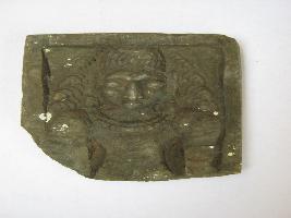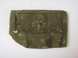 | Description / विवरण | Two armed matted hair with brand and necklace, the figure is carved in low relief. From chest downwards the image is missing due to breakage. The back slab is square. Probably the figure of planet Rahu. |