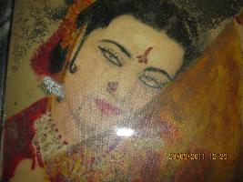 | Description / विवरण | A painting on paper in various colour pigment. The painting depicts a female figure with head titled toleft. Saree is held in both hand in front of chest slightly covering the left side face. The figure is decorated with ornaments. Damage painting over lapped by colours by a non artist while attempting for reviveit it found in modern wooden frame and glass. |