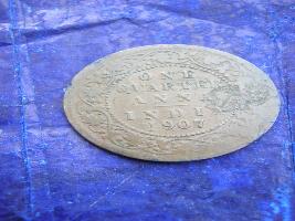 | Description / विवरण | It is a copper coin of king and emperor Edward VII. The head of king Edward VII on the obverse side is noticed. The reverse side has in a round dotted circle written one quarter anna and the year 1907. |