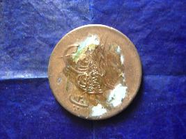 | Description / विवरण | It s a copper coin .On the obverse of the coin Arabic Persian script is visible in thnee likes .It looks jellowish Brown.On the neverse a undu script in a line mark is noticed. |