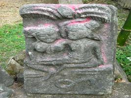 | Description / विवरण | It is an Astika-Jaratkaru. Astika is depicted as sitting on the lap of Jaratkaru. The sculpture is crude in design and execution. A snake is noticed below the pedestal and a tree above their heads. |