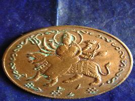 An eight armed Durga image coin |